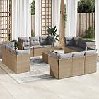 vidaXL Soffgrupp för trädgården med dynor 13 delar beige konstrotting 3217339