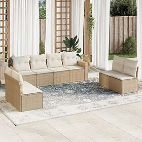 vidaXL Soffgrupp för trädgården med dynor 9 delar beige konstrotting 3218848