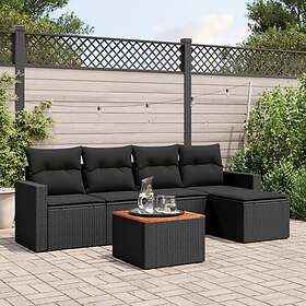 vidaXL Loungegrupp med dynor 6 delar svart konstrotting 3224095