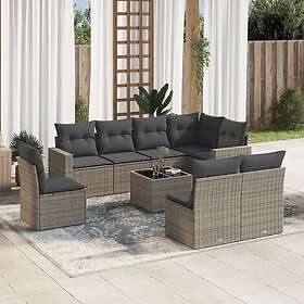 vidaXL Loungegrupp för trädgården m dynor 9 delar grå konstrotting 3219070