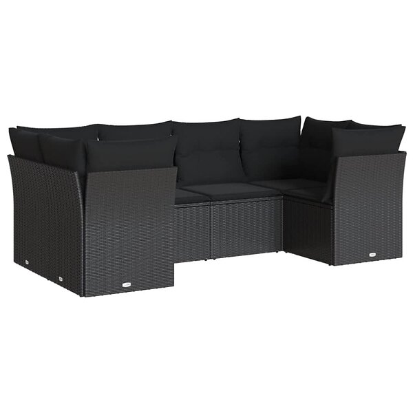 vidaXL Loungegrupp med dynor 6 delar svart konstrotting 3249944