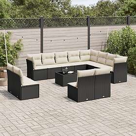vidaXL Loungegrupp för trädgården m dynor 13 delar svart konstrotting 3218476