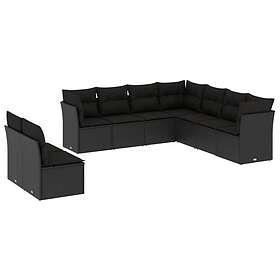 vidaXL Loungegrupp för trädgården m dynor 9 delar svart konstrottning 3249674