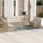 vidaXL Matgrupp för trädgården med dynor 8 delar beige konstrotting 3217448