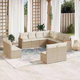 vidaXL Loungegrupp för trädgården m. dynor 11 delar beige konstrotting 3249658