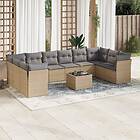 vidaXL Loungegrupp för trädgården m. dynor 11 delar beige konstrotting 3218209