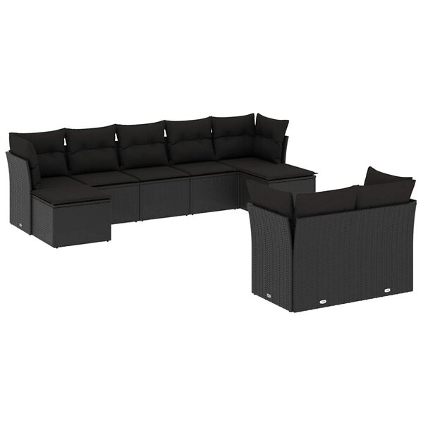 vidaXL Loungegrupp för trädgården m dynor 9 delar svart konstrottning 3250144