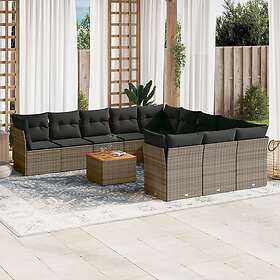 vidaXL Soffgrupp för trädgården 12 delar med dynor grå konstrotting 3223911