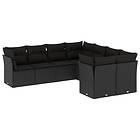 vidaXL Loungegrupp för trädgården med dynor 8 delar svart konstrotting 3250424