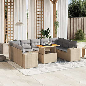 vidaXL Soffgrupp för trädgård med dynor 10 delar beige konstrotting 3219399