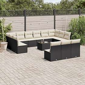 vidaXL Soffgrupp för trädgård med dynor 14 delar svart konstrotting 3218396