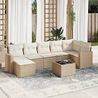 vidaXL Matgrupp för trädgården med dynor 8 delar beige konstrotting 3219278
