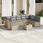 vidaXL Soffgrupp för trädgård med dynor 10 delar beige konstrotting 3249918