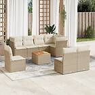 vidaXL Soffgrupp för trädgården med dynor 9 delar beige konstrotting 3223685