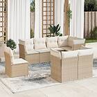vidaXL Matgrupp för trädgården med dynor 8 delar beige konstrotting 3217928