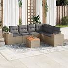 vidaXL Matgrupp för trädgården med dynor 7 delar beige konstrotting 3225464