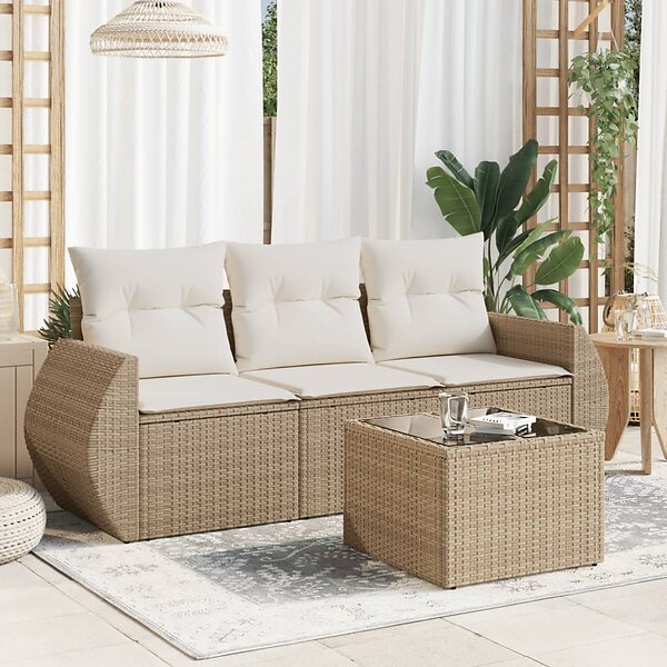 vidaXL Soffgrupp för trädgård med dynor 4 delar beige konstrotting 3221067