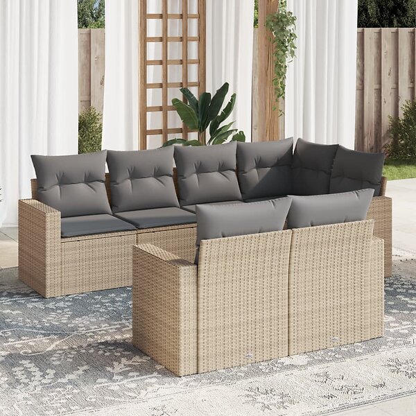 vidaXL Matgrupp för trädgården med dynor 7 delar beige konstrotting 3219199