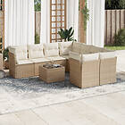 vidaXL Soffgrupp för trädgården med dynor 9 delar beige konstrotting 3217318