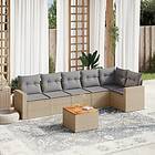 vidaXL Matgrupp för trädgården med dynor 7 delar beige konstrotting 3224134