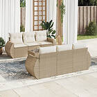 vidaXL Matgrupp för trädgården med dynor 7 delar beige konstrotting 3221107