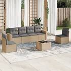 vidaXL Matgrupp för trädgården med dynor 7 delar beige konstrotting 3218809