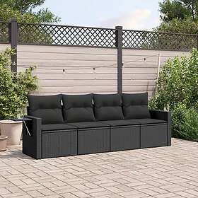 vidaXL Soffgrupp för trädgård med dynor 4 delar svart konstrotting 3253402