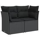 vidaXL Trädgårdssoffa 2-sits med dynor konstrotting svart 365986