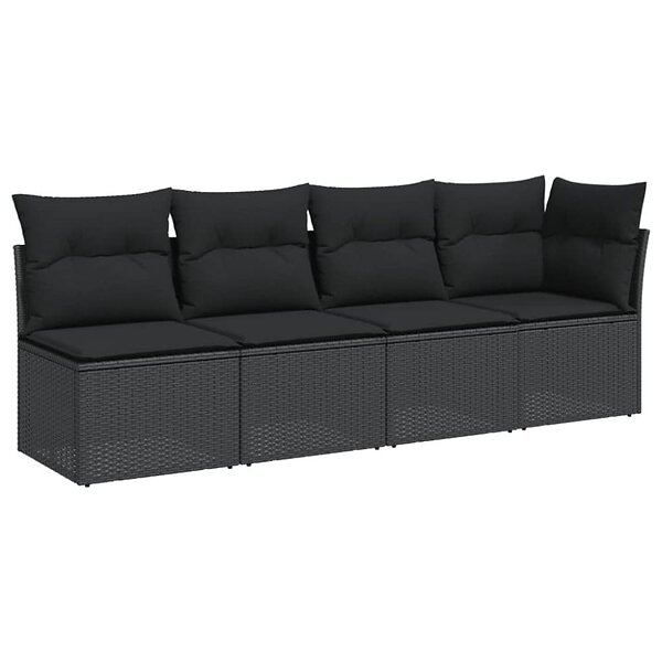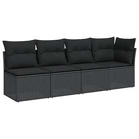 vidaXL Trädgårdssoffa 4-sits med dynor konstrotting svart 365964