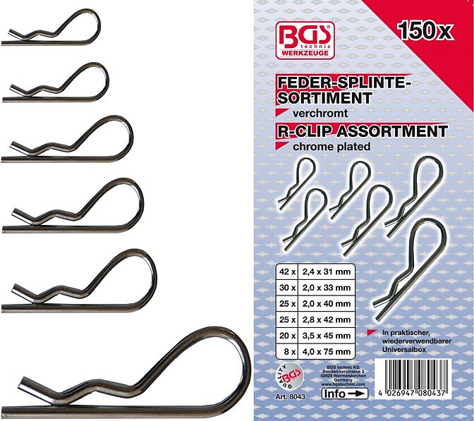 BGS Technic BGS Fjädersprintsortiment 2,4-40mm. 150 delar