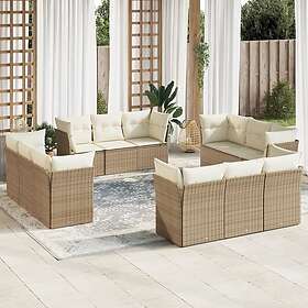 vidaXL Soffgrupp för trädgården 12 delar med dynor beige konstrotting 3249167
