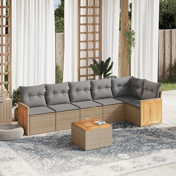 vidaXL Matgrupp för trädgården med dynor 7 delar beige konstrotting 3260078