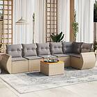 vidaXL Matgrupp för trädgården med dynor 7 delar beige konstrotting 3257347