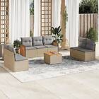 vidaXL Matgrupp för trädgården med dynor 8 delar beige konstrotting 3259966