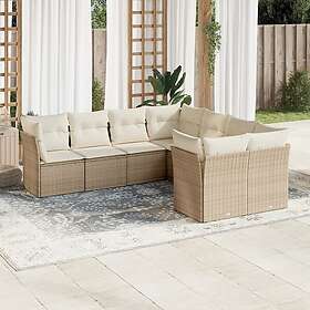 vidaXL Matgrupp för trädgården med dynor 8 delar beige konstrotting 3250427