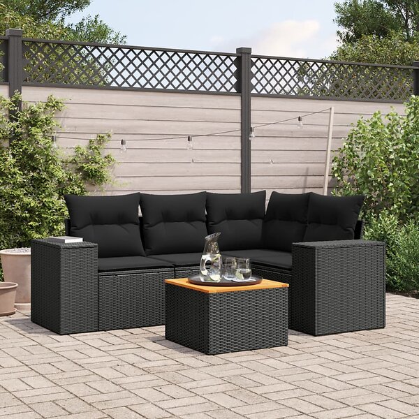 vidaXL Loungegrupp för trädgården med dynor 5 delar svart konstrotting 3225425