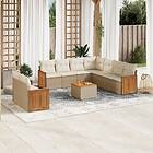 vidaXL Soffgrupp för trädgård med dynor 10 delar beige konstrotting 3260189