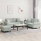 vidaXL Soffgrupp med kuddar 3 delar ljusgrå sammet 3202240