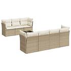 vidaXL Matgrupp för trädgården med dynor 8 delar beige konstrotting 3249117
