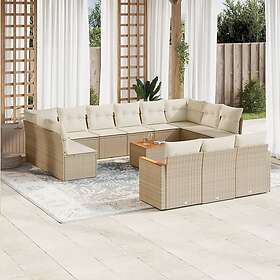 vidaXL Soffgrupp för trädgården 14 delar med dynor beige konstrotting 3226464