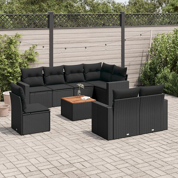 vidaXL Loungegrupp för trädgården m dynor 9 delar svart konstrottning 3256489