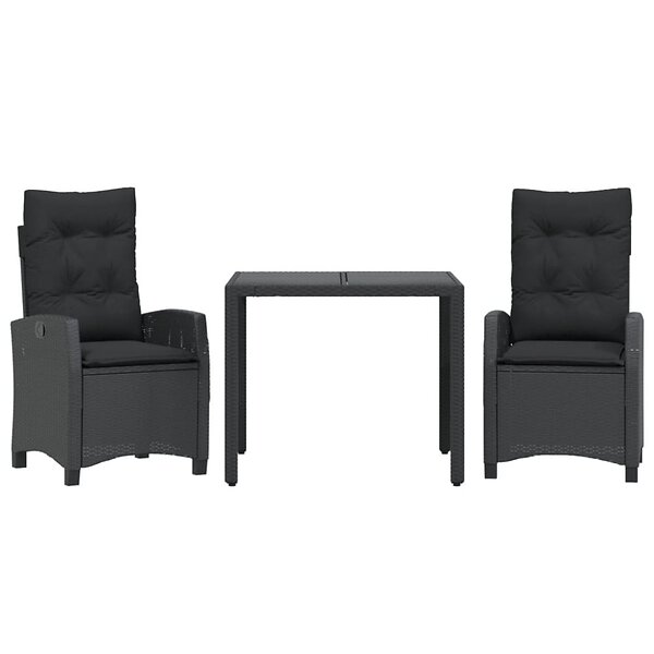 vidaXL Matgrupp för trädgården med dynor 3 delar svart konstrotting 3212635