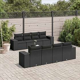 vidaXL Loungegrupp för trädgården m dynor 9 delar svart konstrottning 3254682