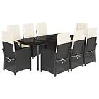 vidaXL Matgrupp för trädgården med dynor 9 delar svart konstrottning 3212308