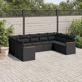 vidaXL Loungegrupp för trädgården m dynor 9 delar svart konstrottning 3258674
