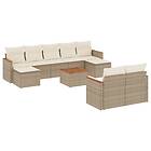vidaXL Soffgrupp för trädgård med dynor 10 delar beige konstrotting 3258810