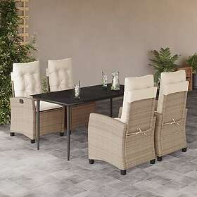 vidaXL Matgrupp för trädgården med dynor 5 delar beige konstrotting 3212806