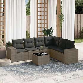 vidaXL Soffgrupp för trädgården med dynor 7 delar grå konstrotting 3222619