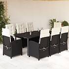 vidaXL Matgrupp för trädgården med dynor 9 delar svart konstrottning 3212309