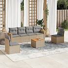 vidaXL Matgrupp för trädgården med dynor 7 delar beige konstrotting 3258272